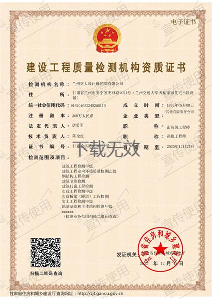 建設(shè)工程質(zhì)量檢測(cè)機(jī)構(gòu)資質(zhì)證書