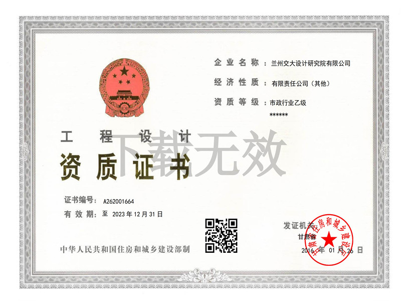 市政工程設(shè)計(jì)資質(zhì)證書
