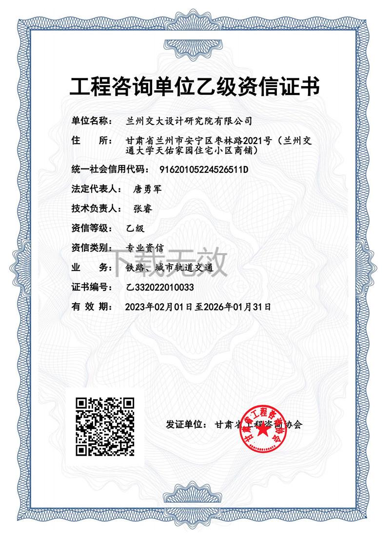 工程咨詢單位資信證書(鐵路、城市軌道交通)