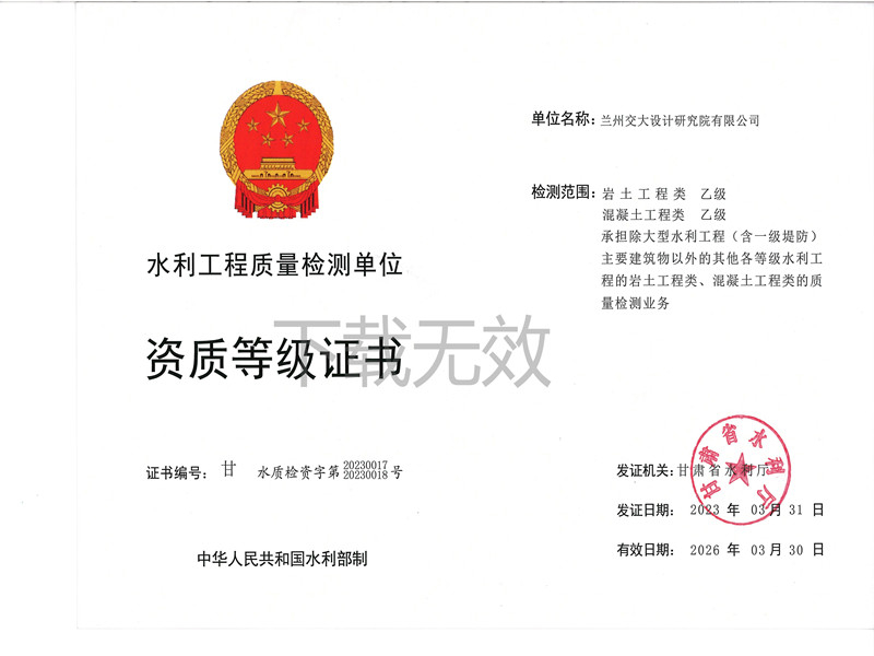 水利工程質(zhì)量檢測(cè)單位資質(zhì)等級(jí)證書